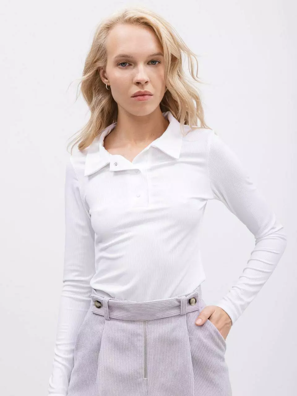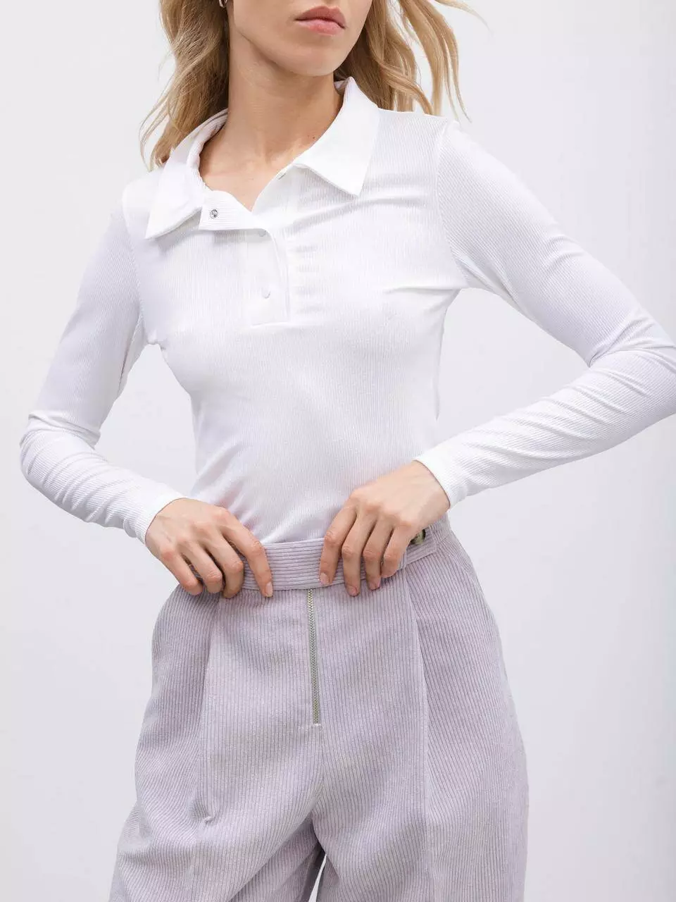 Базова футболка з комірцем-поло у білому кольорі – це незамінний