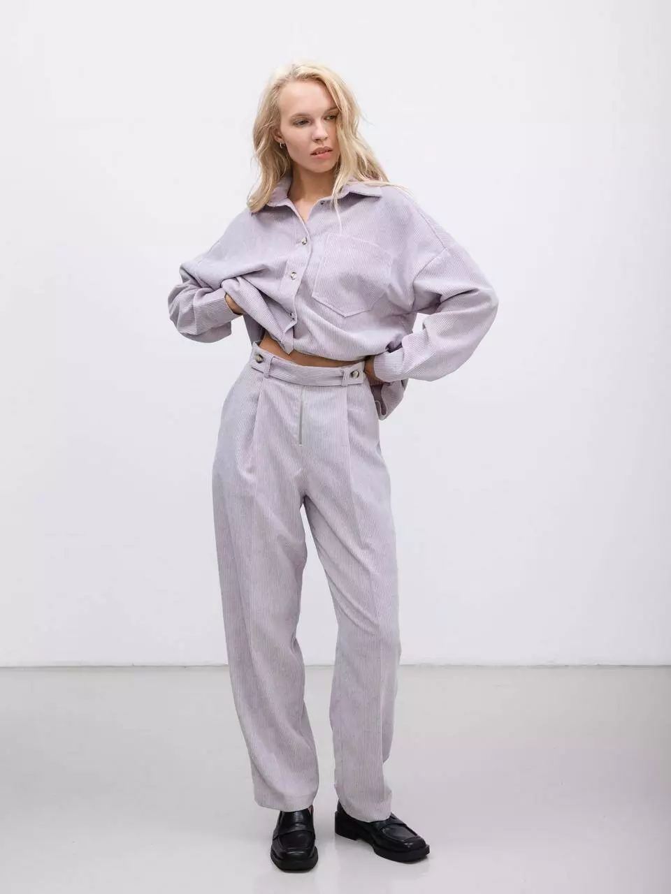 Брюки доступні в світло-лавандовому кольорі, що додає свіжості та