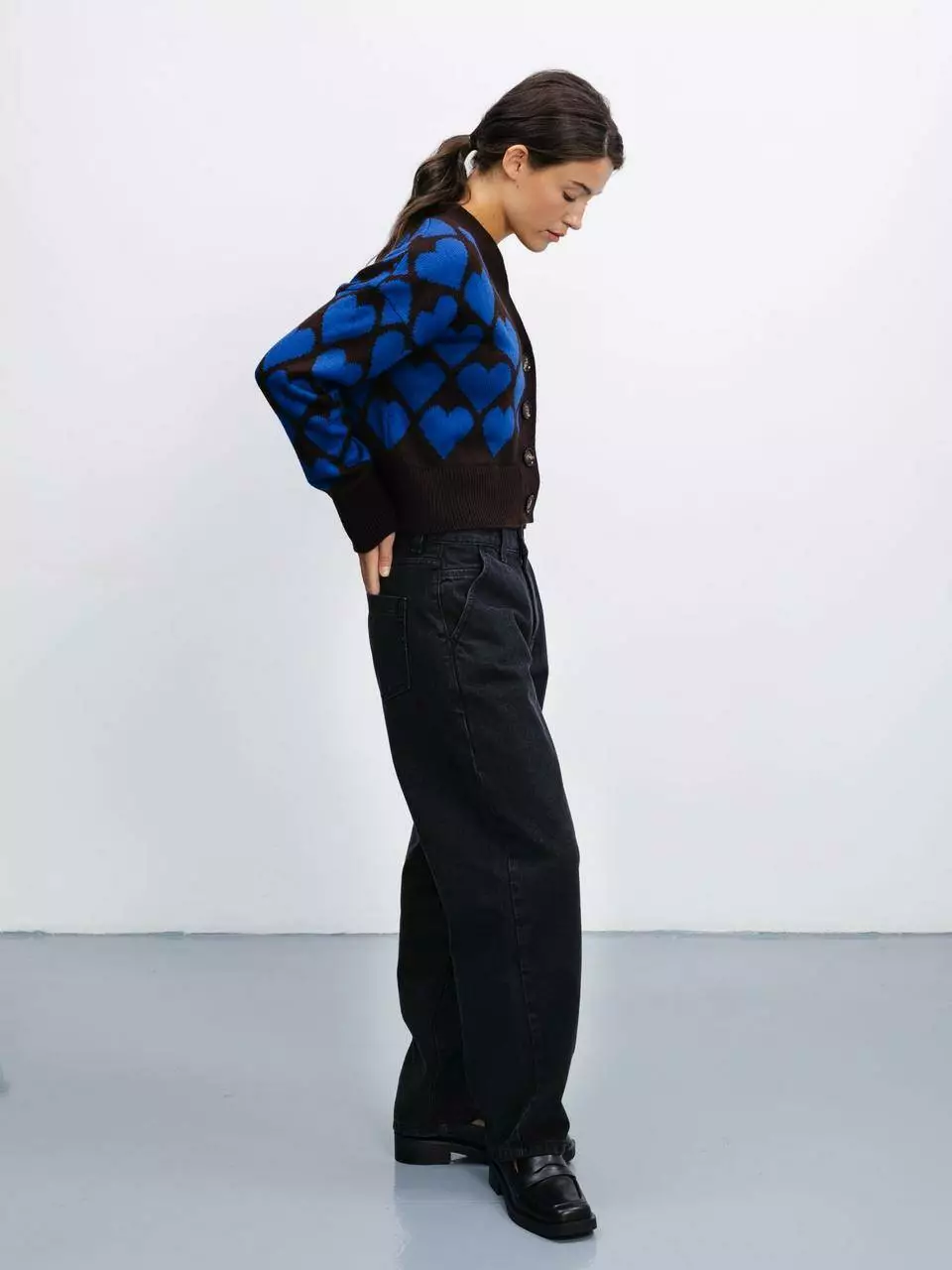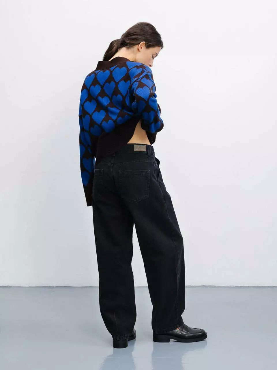 - Форма: Особлива форма baggy balloon робить ці джинси унікальними. Вони трошки об'ємні в стегнах, що додає їм характеру та дозволяє вільно рухатися, та завужені до низу, створюючи модний та елегантний силует.
