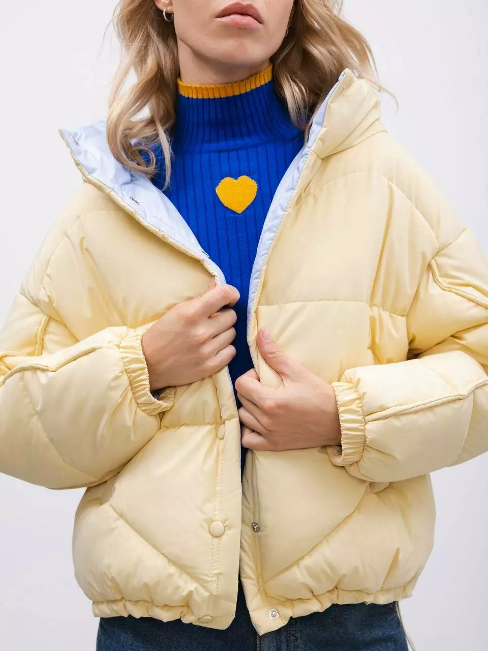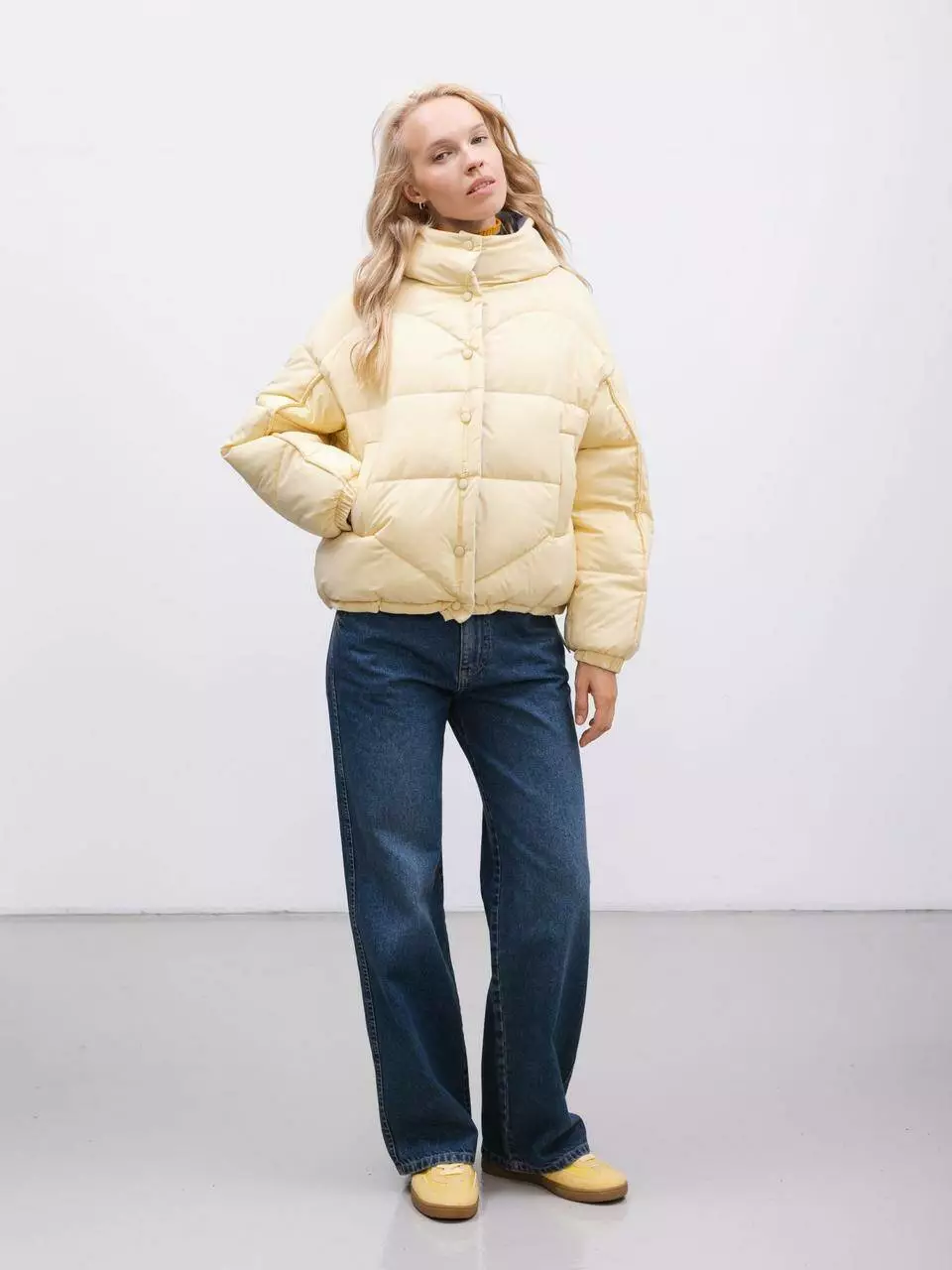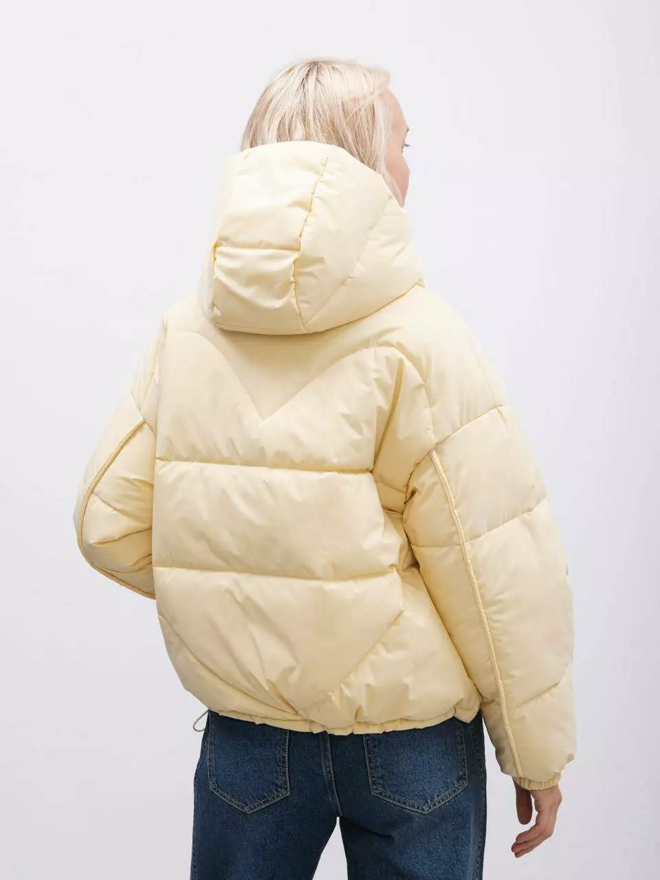 укороченою стьобаною курткою. Виготовлена зі штучним пухом, вона