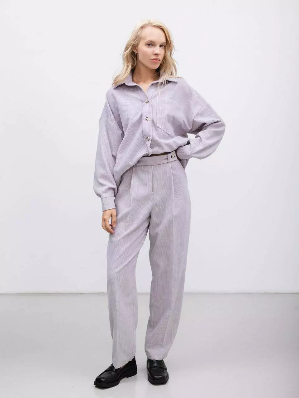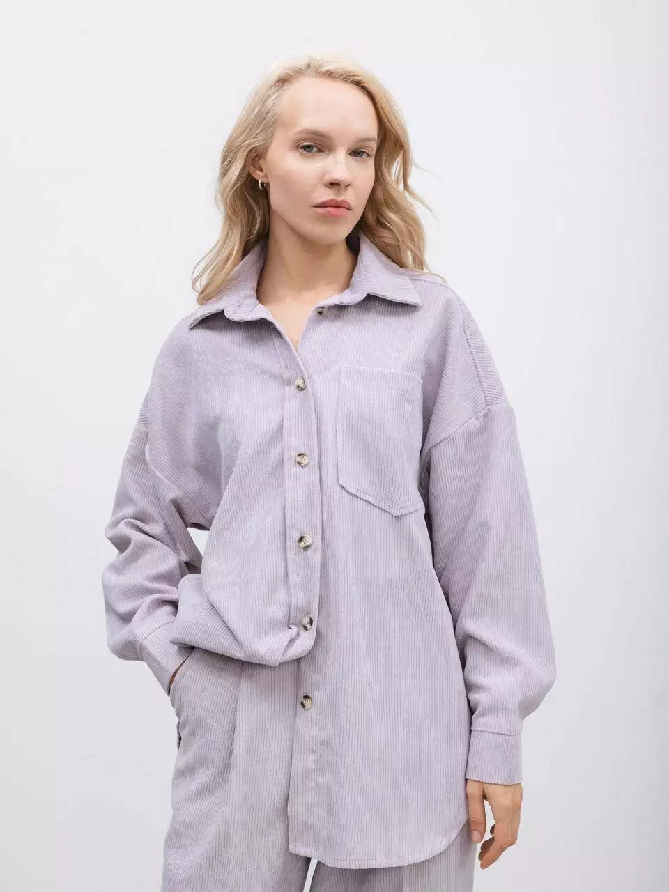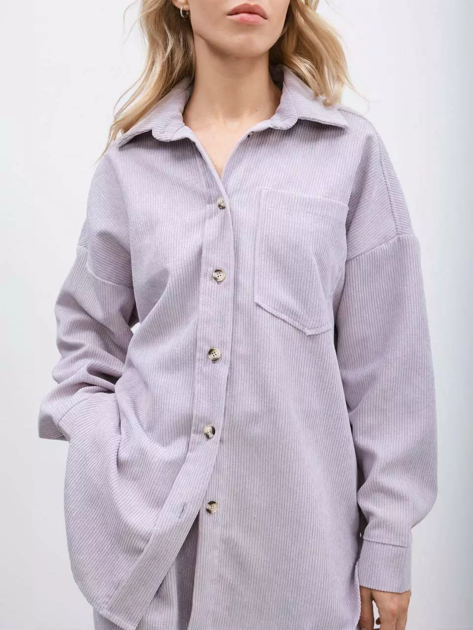 Ця сорочка оверсайз з фактурної тканини ніжно-лавандового