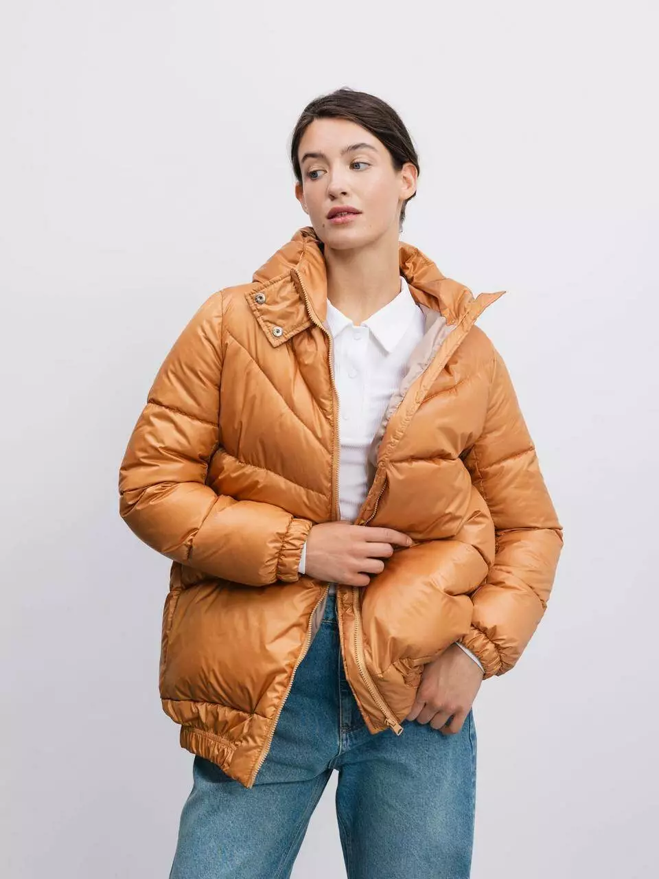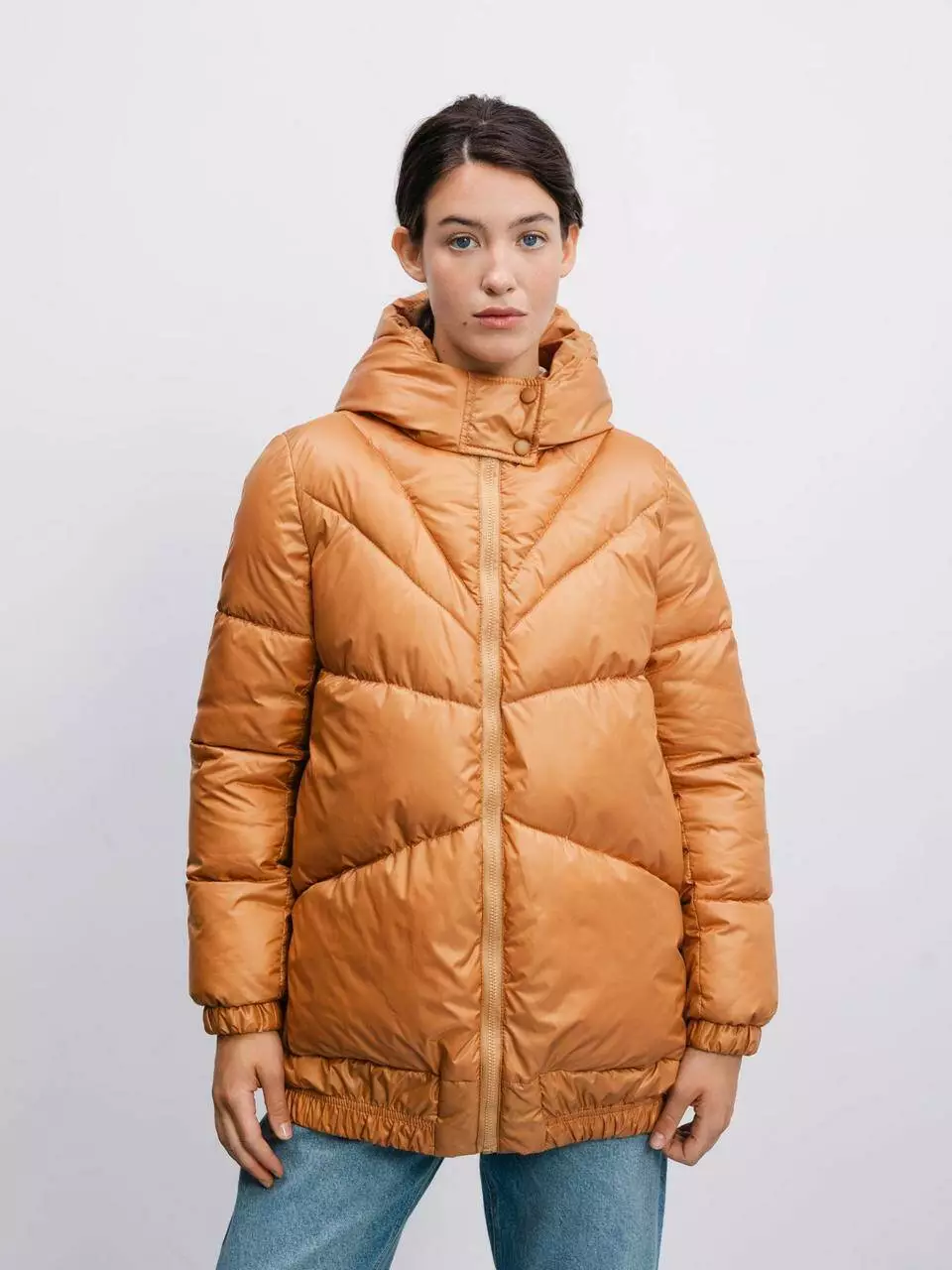 поєднанням стилю та комфорту з нашою стьобаною курткою карамельного