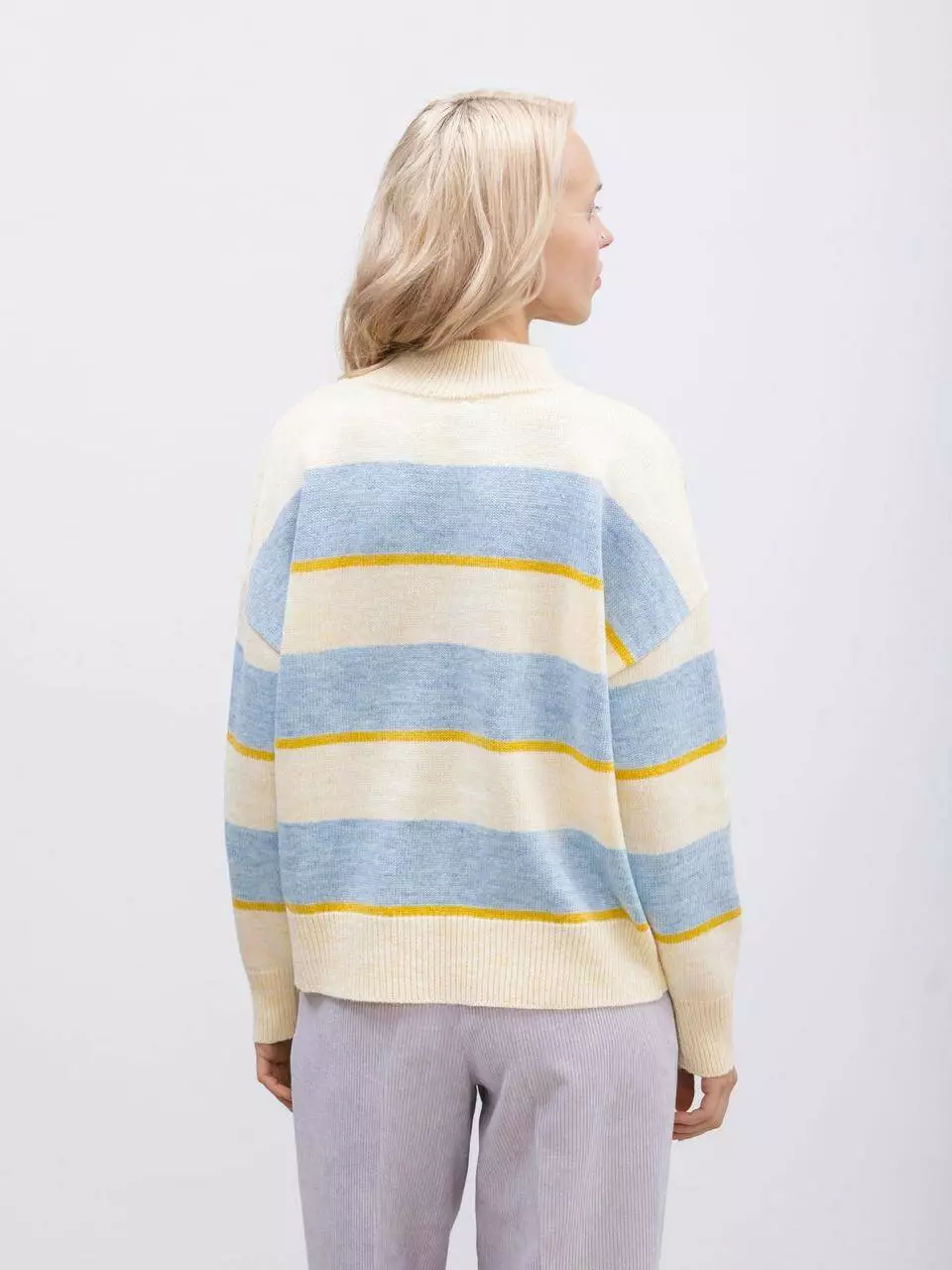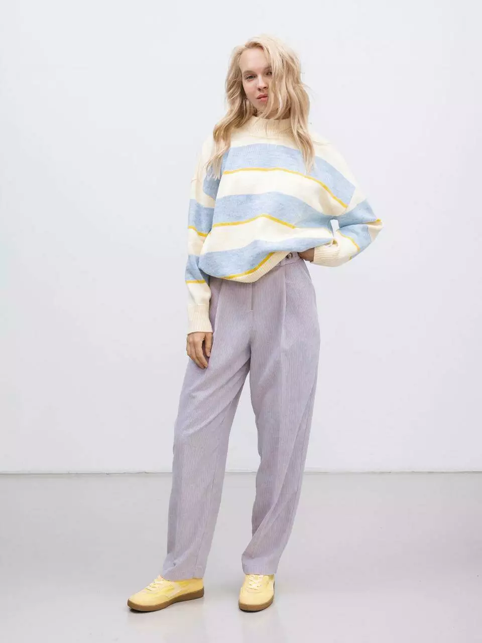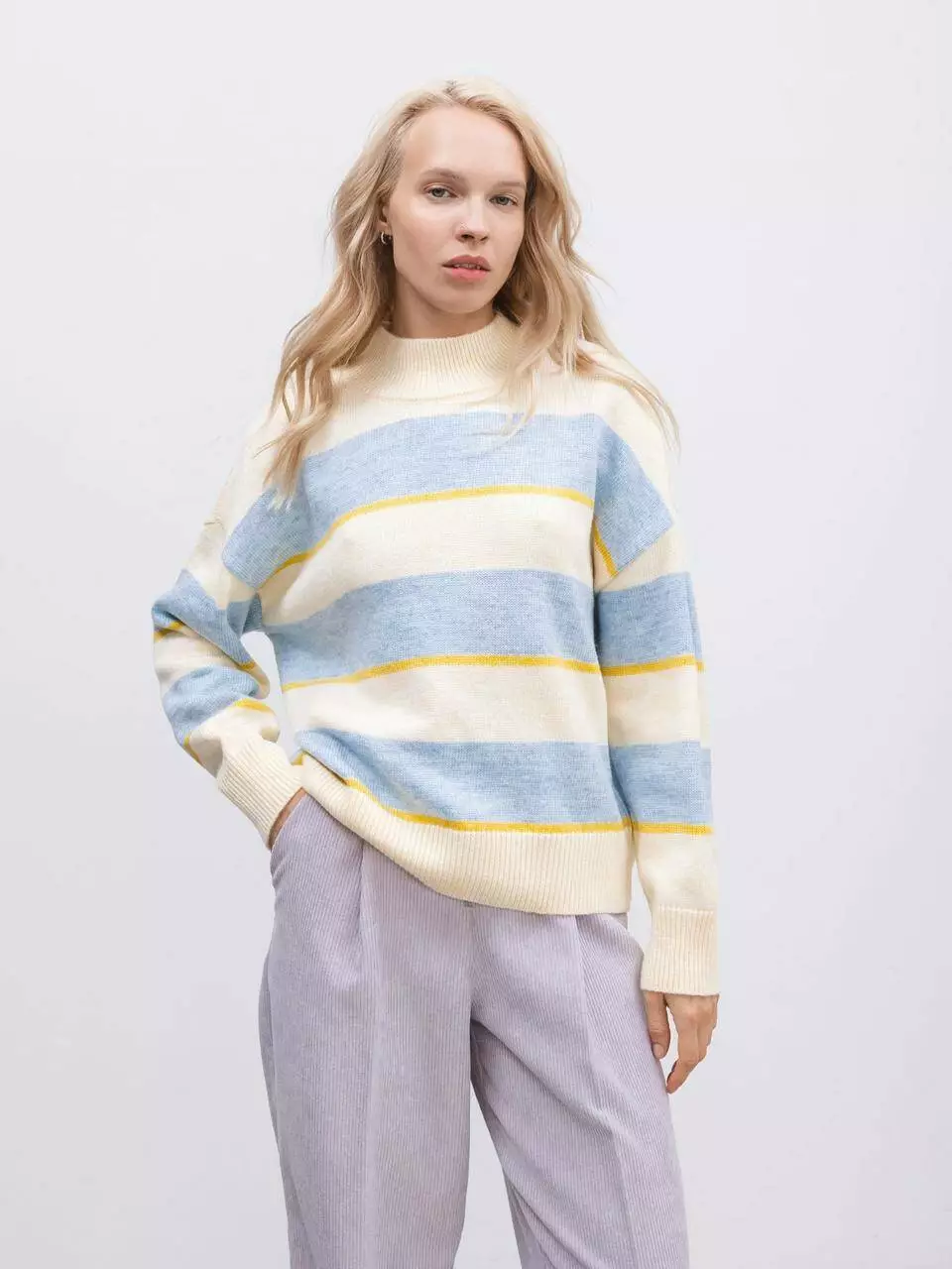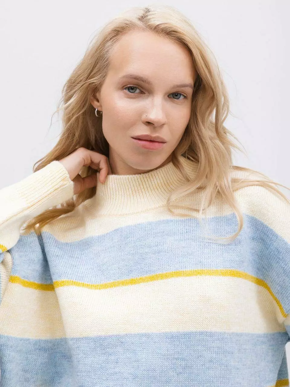 Теплий светр в блакитно-помаранчеву смужку р. XS