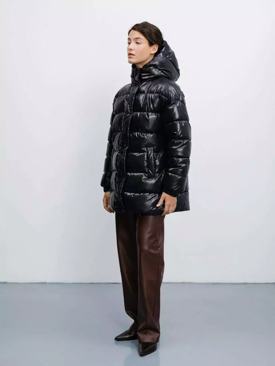 куртку чорного кольору. Виготовлена зі штучним пухом, ця модель