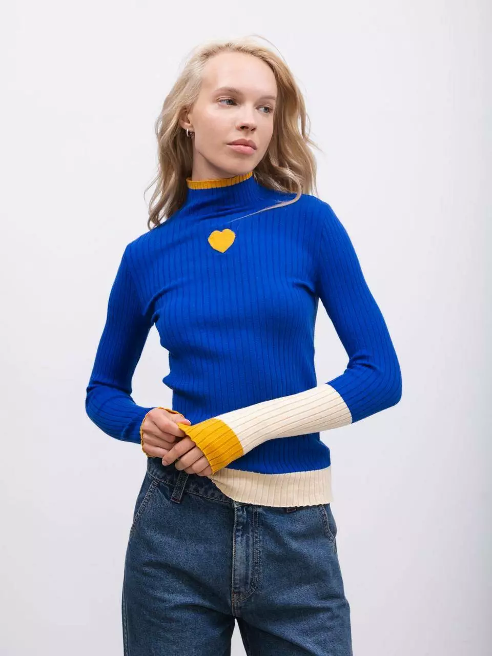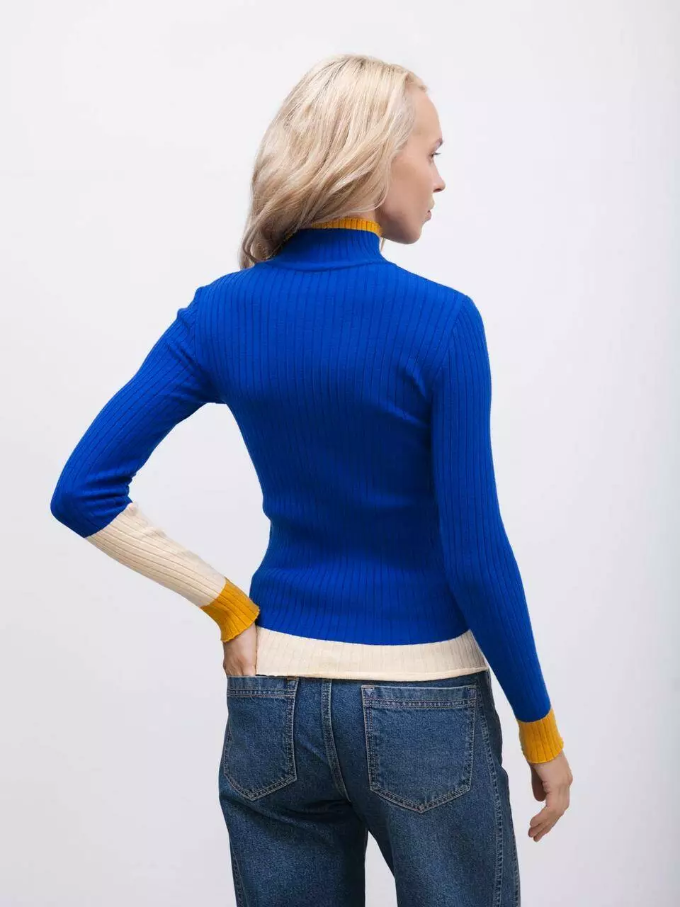 Оновіть свій гардероб цим стильним синім гольфом, який об'єднує