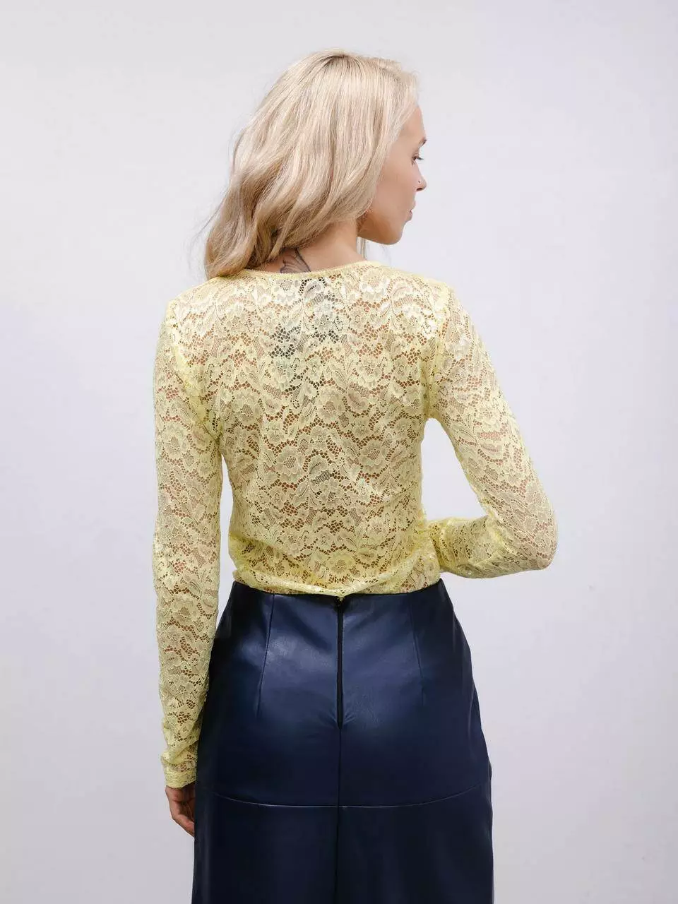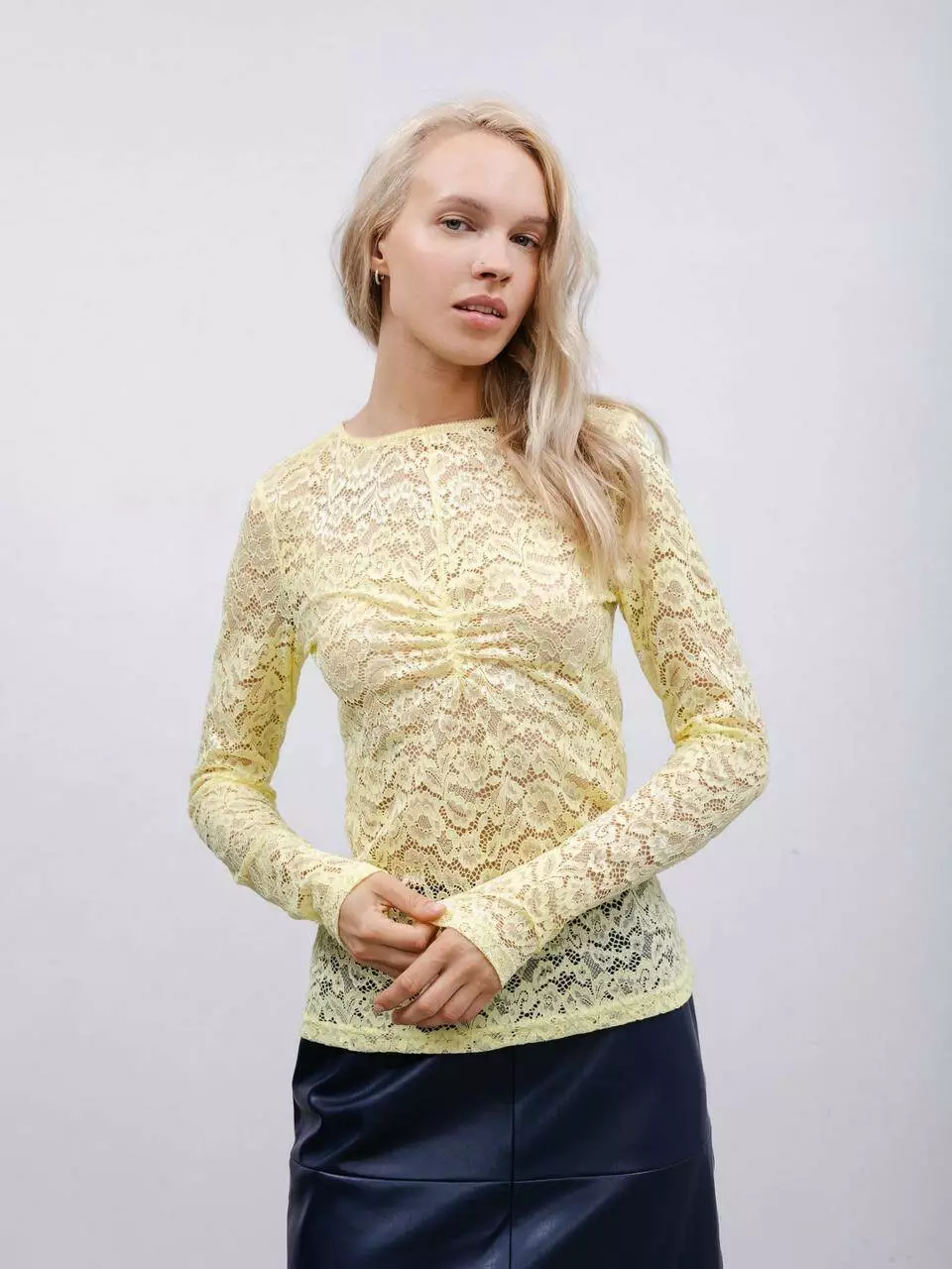 Жовта футболка з довгим рукавом з еластичного гіпюру р.XS